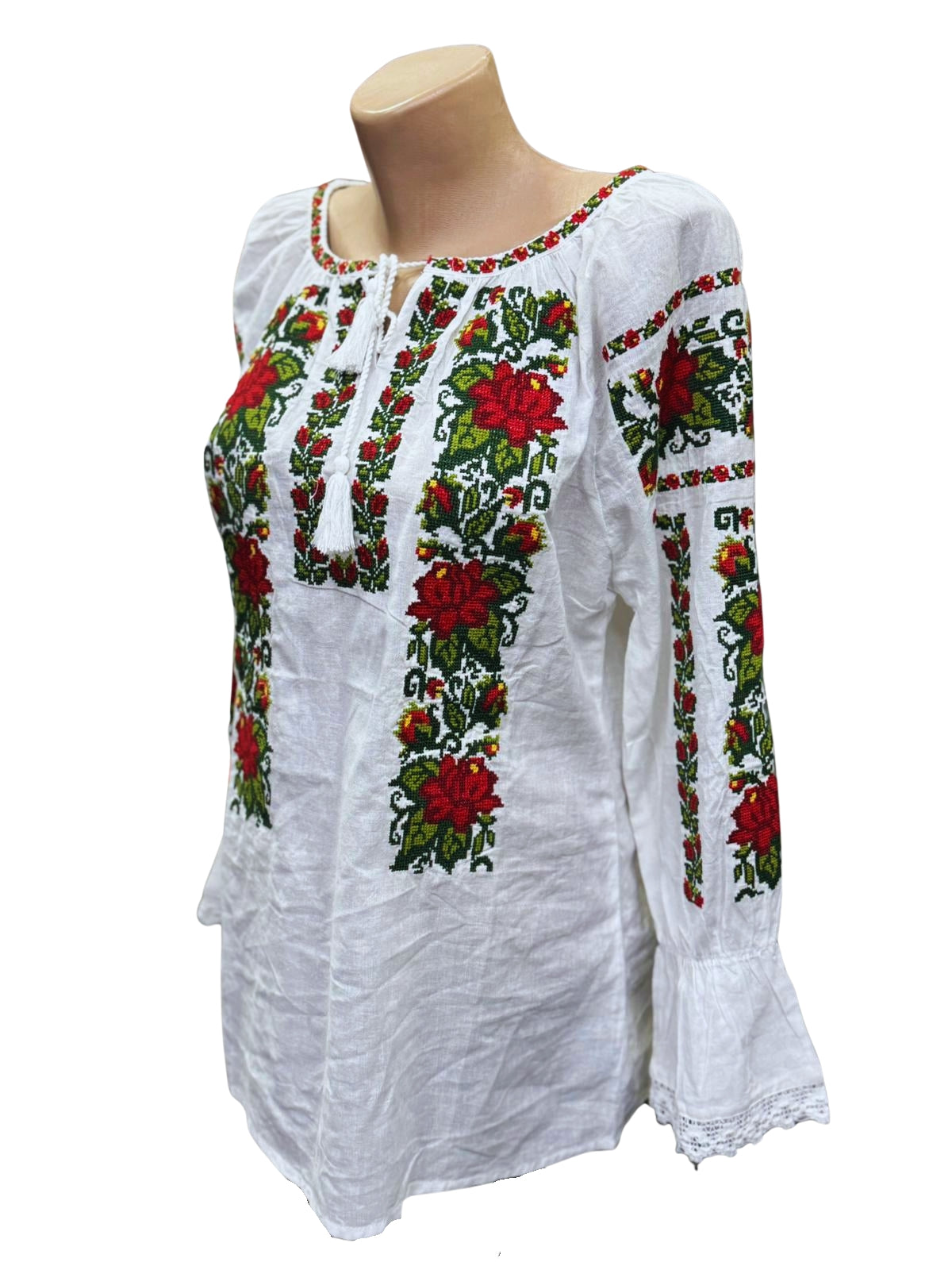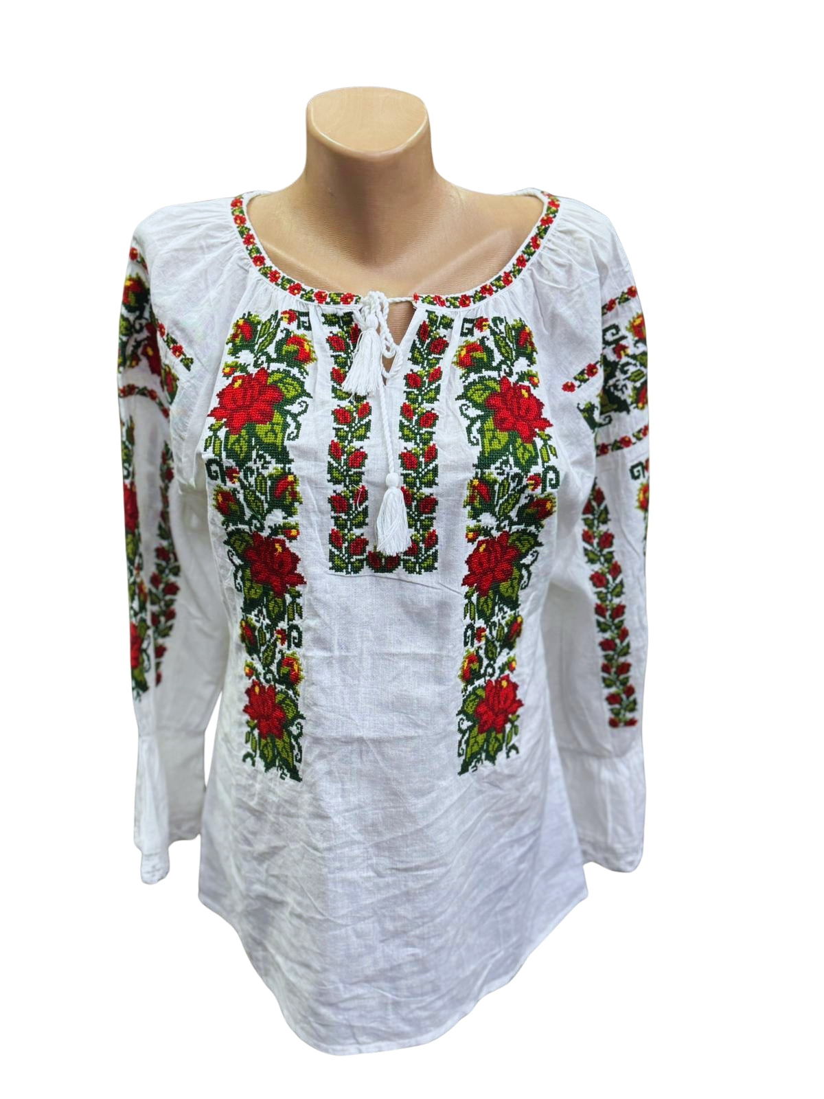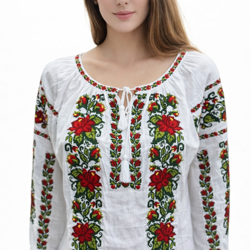 Confecționată din 100% bumbac, această ie tradițională asigură confort și respirabilitate. Broderia florală, realizată cu grijă, adaugă un plus de eleganță și autenticitate. Model cu guler rotund și mâneci lungi, potrivit pentru orice ocazie. Poate fi oferită ca dar simbolic de primăvară sau mărțișor, pentru cineva drag.